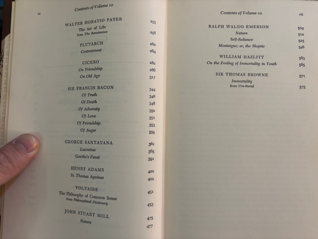 Those essays in Volume 10 (final volume) of Gateway to the Great Books are exceedingly worthy. Of special note is JS Mill and Voltaire. Emerson is a great contrast to Mill. John Dewey is a must-read for anyone in Education—but unfortunately he will never be read by the uneducated. Sad.