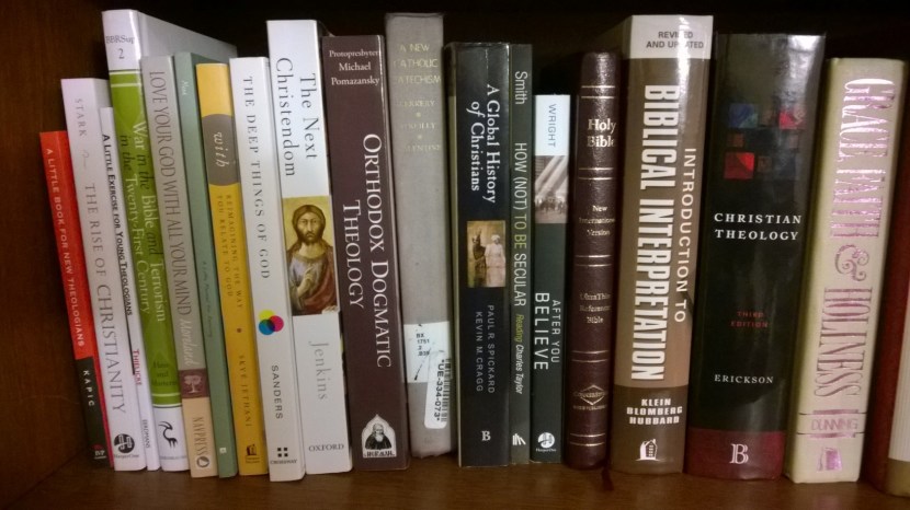 I tell you what. I’m still running on the inside. Hopefully I’ll find the peace that passes understanding tomorrow. I only have until the end of January before it begins again. Here’s a photo of the books I read this semester. On the left of The Holy Bible are books I read cover-to-cover, on the right, are books that I read half-or-more. Within the aforementioned Bible, Genesis, Exodus, Leviticus, Numbers, Deuteronomy, Joshua, Judges, Ruth, Job, Psalms, Proverbs, Ecclesiastes, and Song of Songs. Though those last three were more skimmed than read (forgive me).