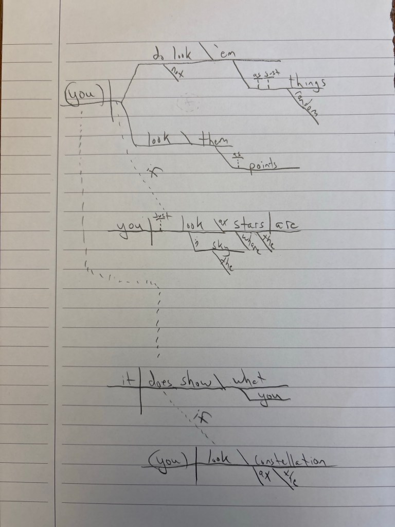 Before you review the provided diagram, please take a moment to consider the concept she asserted that the “stars” are “random things” and “points”.